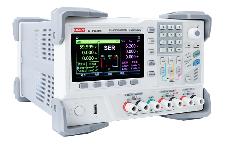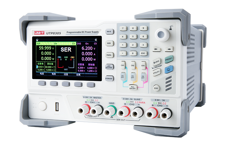 UDP8000系列可编程线性直流电源具有两路30V/5A输出、一路6V/3A和一路标准USB输出,产品4.3英寸TFT大屏提供丰富的功能界面,使列表/延时器功能、触发器、监测器功能、波形显示功能、系统设置和输出预设功能等便捷易用。